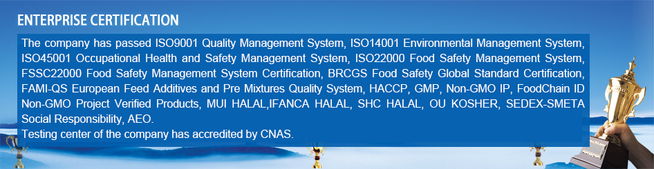 The passing of this system certification indicates that the enterprise has established a comprehensive management system and fully meet customer and industry regulatory requirements regarding food safety.